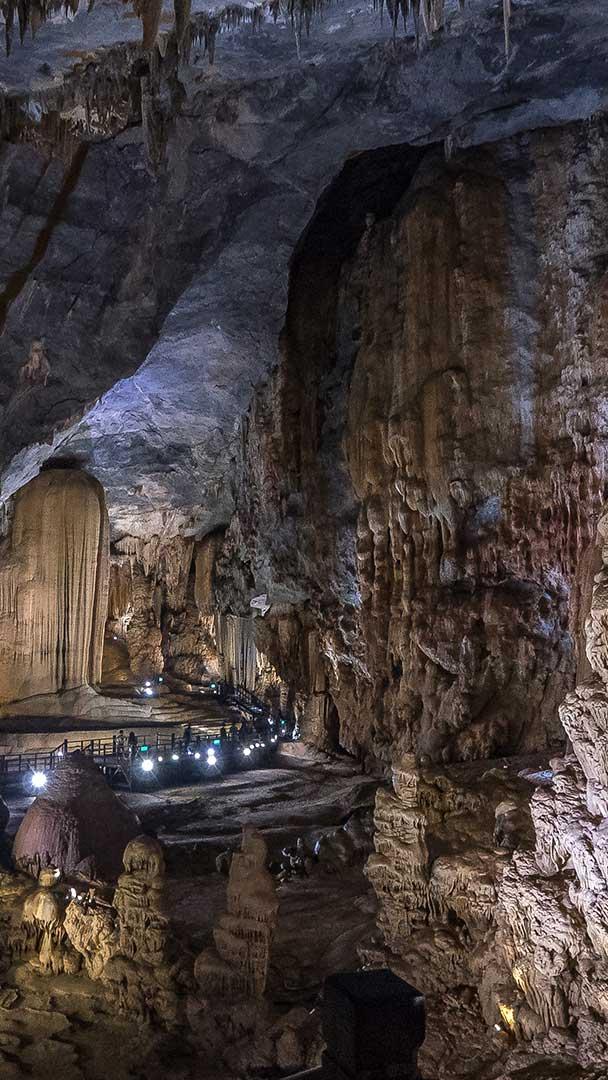 Paradise Cave makes a powerful first impression the moment visitors step inside. This vast limestone cavern lies deep within Phong Nha-Ke Bang National Park in central Vietnam, a region marked by rugged mountains and countless hidden caves. Stretching 31 kilometres, Paradise Cave is one of Asia"s longest dry caves, and its scale is immediately apparent. High ceilings rise above the walkways and layered patterns formed by mineral-rich water over millions of years line the walls.