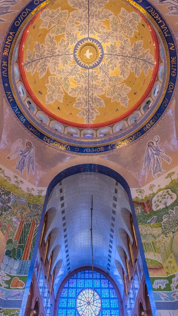 Cúpula Majestosa Vista interna acima do altar principal da Basílica de Nossa Senhora Aparecida, São Paulo (© Marcos Martinez Sanchez/Getty Images)
