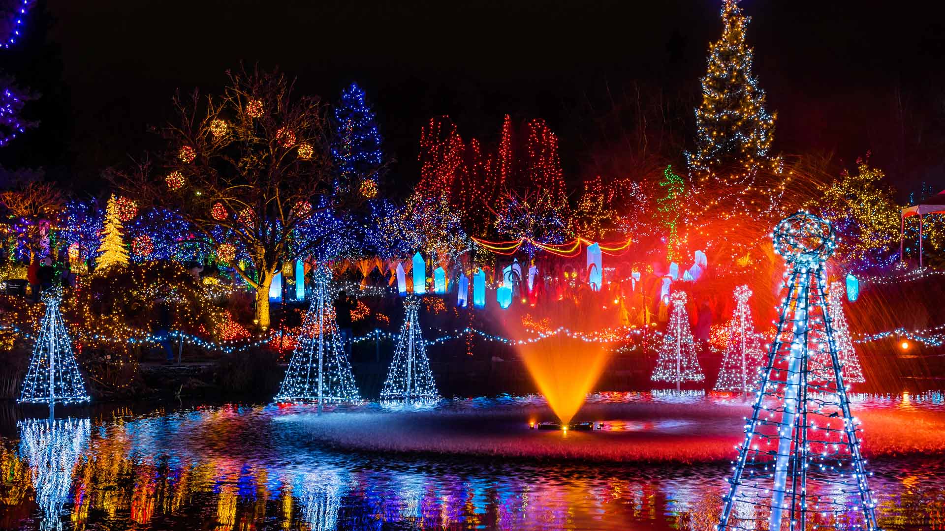In today"s image, nature and human creativity"s dazzling fusion shows the Festival of Lights—an event organized annually between November and January—in the VanDusen Botanical Garden in Vancouver. The garden is home to 55 acres of land filled with plants from all over the world, including a large collection of plants native to British Columbia. The botanical garden opened its doors in 1975 and was named after a local philanthropist and lumberjack, Whitford Julian VanDusen. In the buzzing city, the peaceful oasis charms visitors with its diverse and colorful flora, water features, sculptures and totem poles. For the bundle-of-energy type of guests, the Elizabethan Maze—created with 2,000 cedar trees—provides entertainment with its clever twists and turns.
