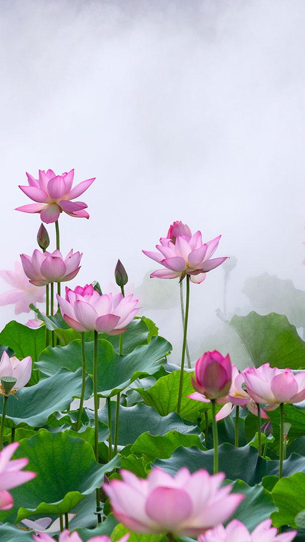 此花端合在瑶池 雾中莲花,中国佛山 (© huoguangliang/Getty Images)