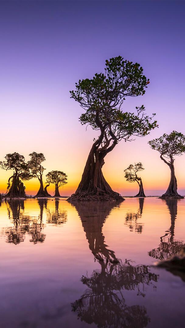 潮汐的守护者 黄昏时的红树林,瓦拉基里海滩,松巴岛,印度尼西亚 (© Boonchet Ch./Getty Images)