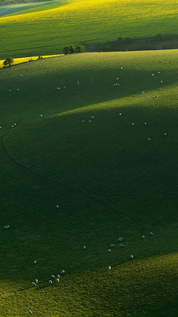 波浪板起伏的绿丘 南唐斯国家公园的绵羊,东萨塞克斯郡,英国 (© Slawek Staszczuk/Alamy)