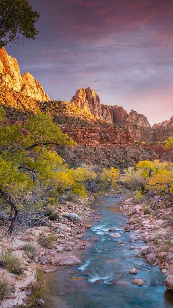 历经百年的锡安国家公园 犹他州锡安国家公园的维尔京河,美国 (© Jonathan Ross/Getty)