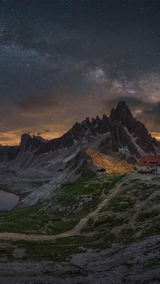 Wo befinden sich diese spektakulären Gipfel? Milchstraße über die Drei Zinnen, Italien (© Juan Romero/Cavan Images)