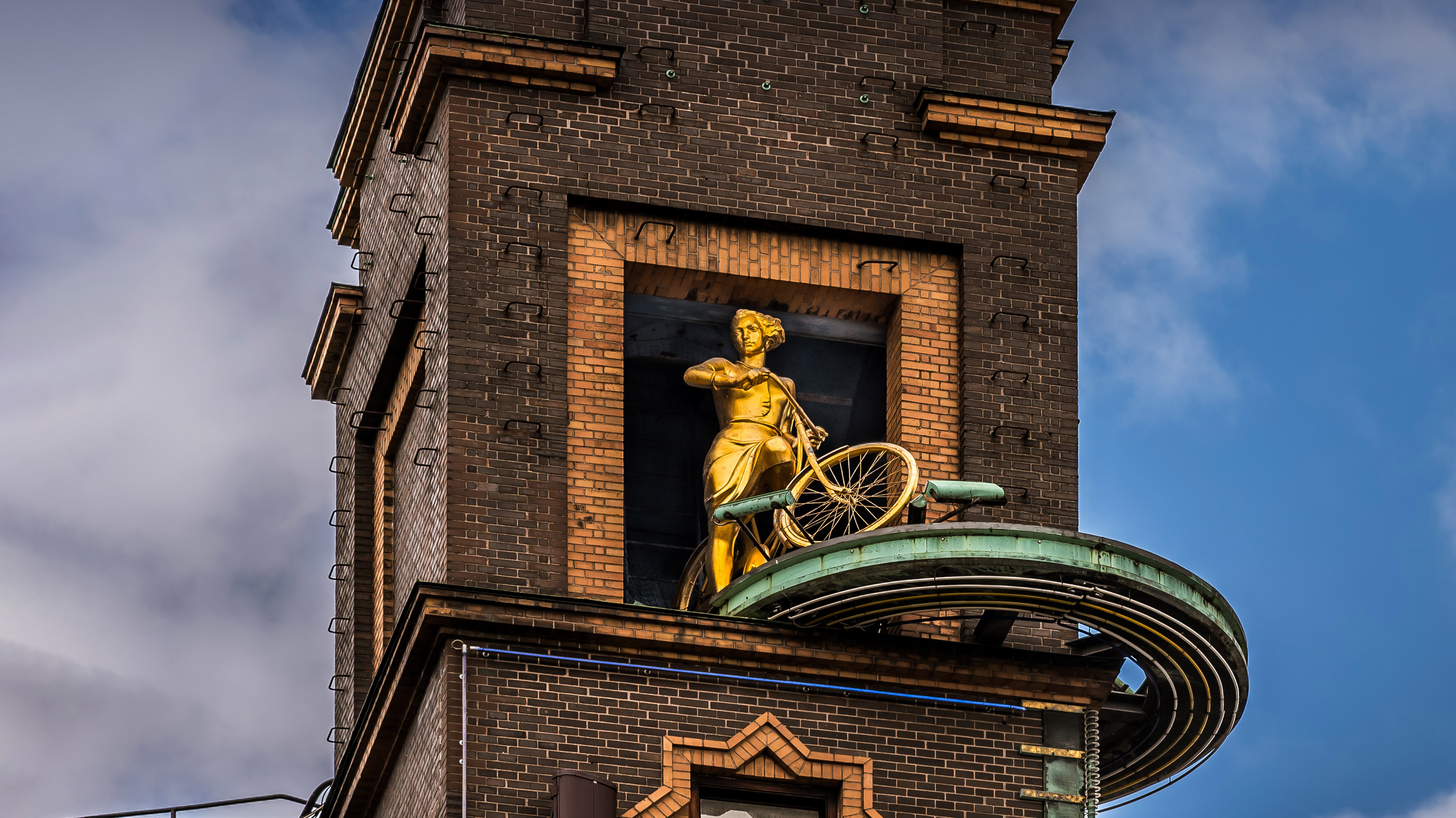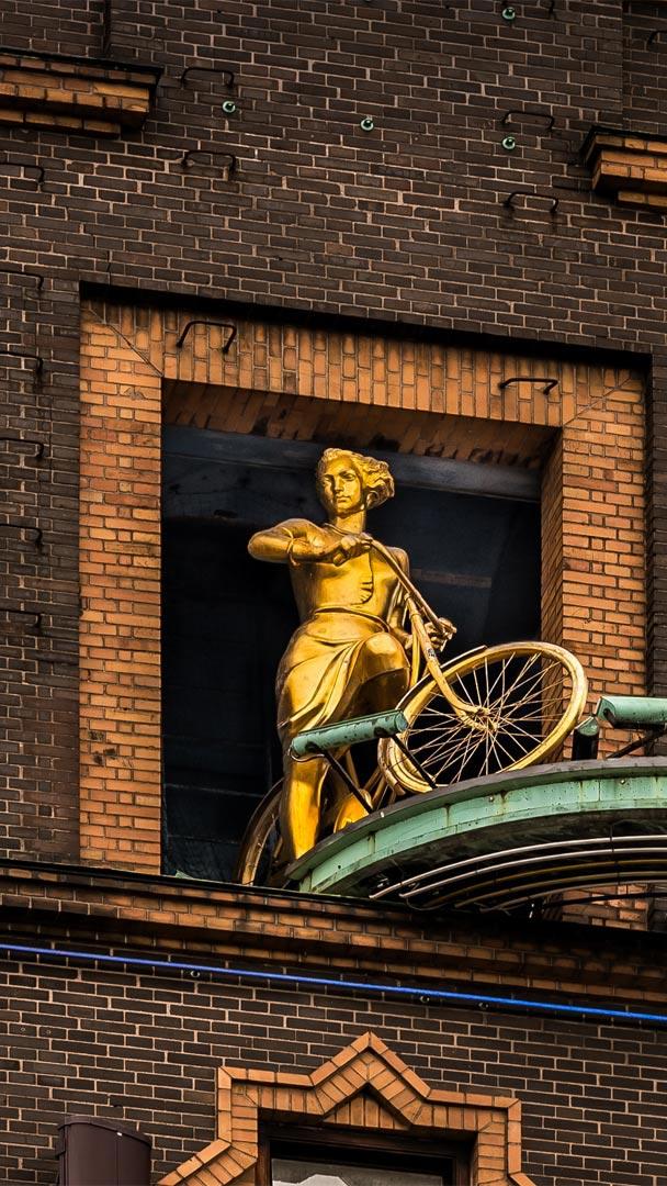 Ein perfekter Tag für eine Tour Vejrpigerne (Wettermädchen), Statue auf dem Dach des Richshuset, Rådhusplads, Kopenhagen, Dänemark (© Stig Alenas/Shutterstock)