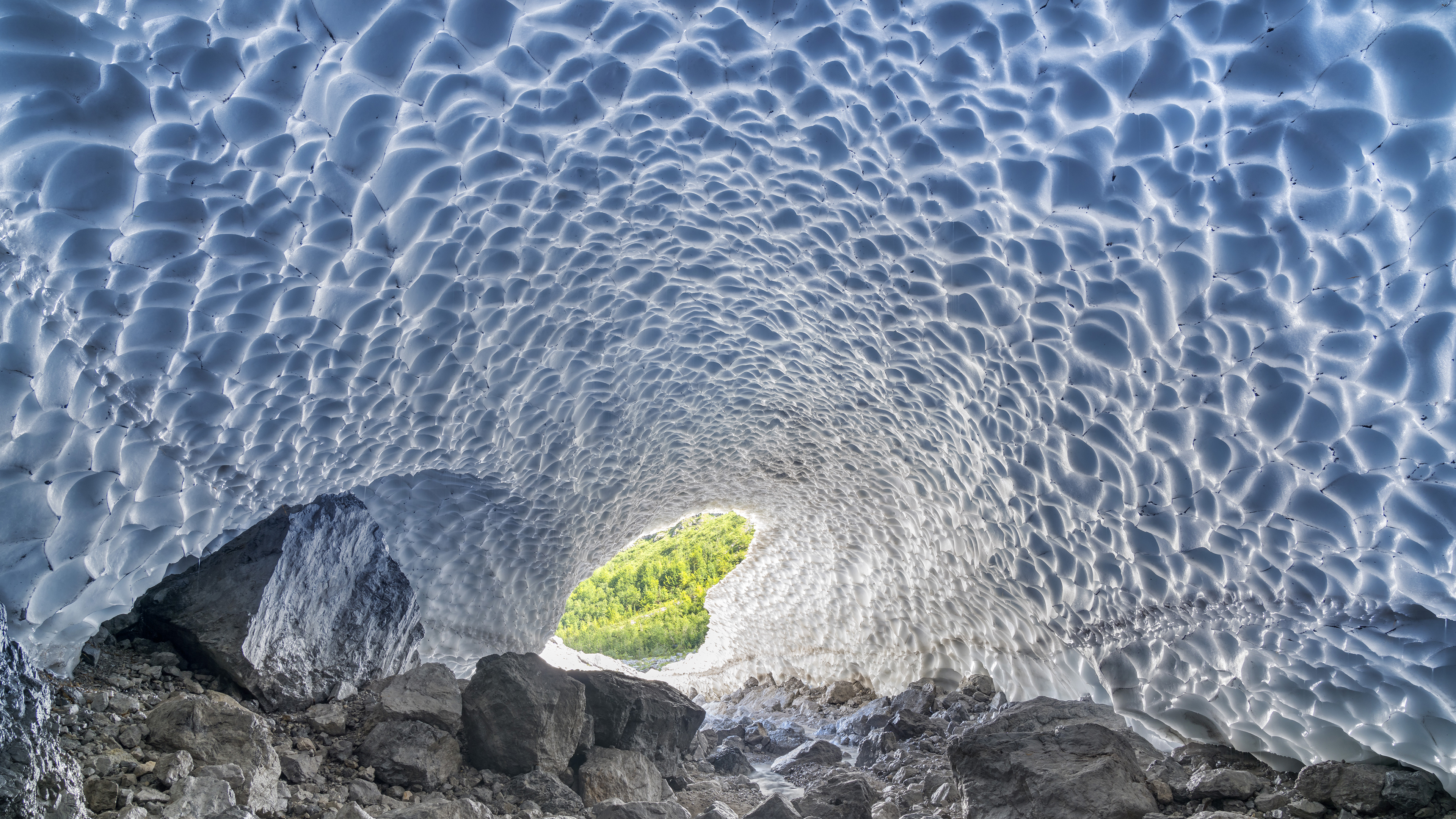 Die Eiskapelle am Watzmann im Nationalpark Berchtesgaden in Bayern ist eine faszinierende Eishöhle, die ihren Namen der eisigen Formation verdankt, die sich in ihr bildet. Umgeben von den imposanten Alpen und in der Nähe des malerischen Königssees, beeindruckt der Ort jeden Besucher. Sie entstand durch das Abschmelzen des Gletschers, der den Watzmann umgibt. Ihr beeindruckendes Erscheinungsbild zieht seit jeher Wanderer und Forscher an. Bekannt ist sie auch für ihre kunstvollen Eiszapfen und Eisskulpturen, die sich im Laufe der Jahrhunderte gebildet haben.