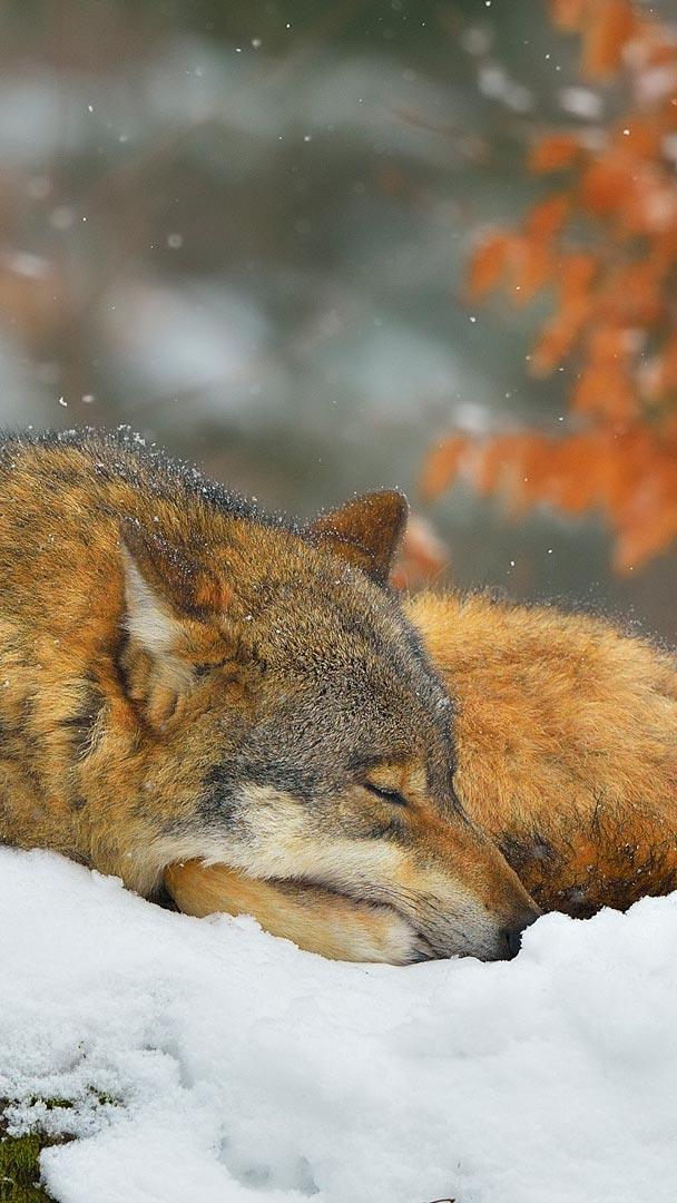 Haben Sie nicht auch Lust auf einen gemütlichen Winterschlaf und erst im Frühjahr wieder aufzuwachen? Dieser eurasische Wolf hat sich von der ruhigen Umgebung des Nationalparks Bayerischer Wald an der Grenze zu Tschechien in den Schlaf wiegen lassen. Wir befinden uns heute in Deutschlands erstem Nationalpark, der 1970 gegründet wurde. Dieses Naturparadies bietet eine einzigartige Kombination aus unberührten Wäldern, wilden Flüssen und einer vielfältigen Tierwelt.