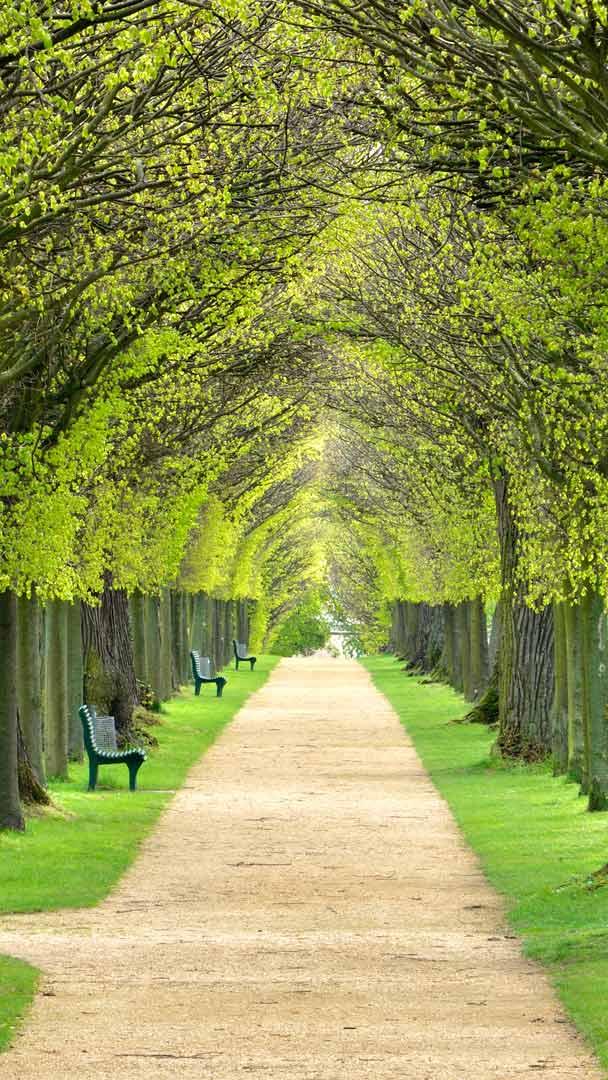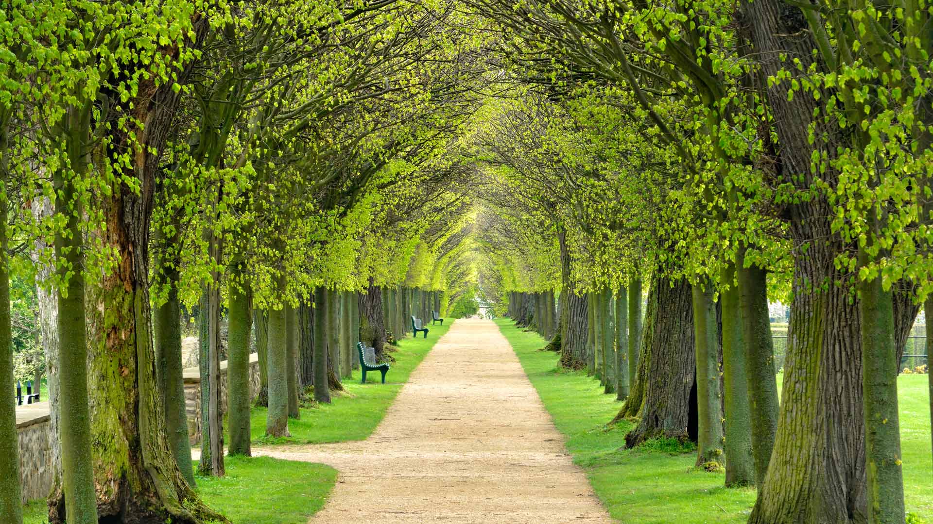 Lindenallee, baumgesäumter Fußweg durch den Park im Frühling © AVTG/Getty Images