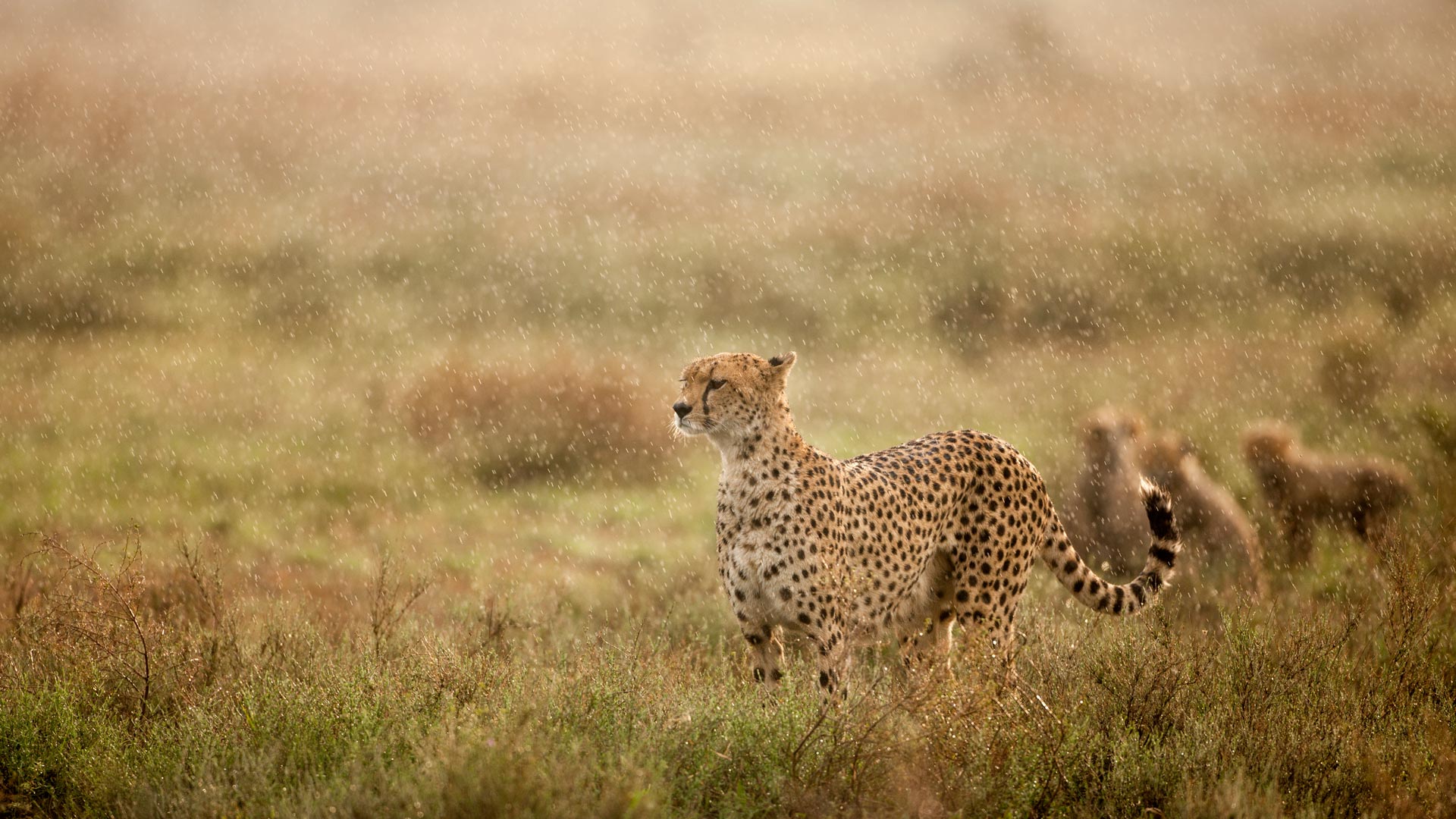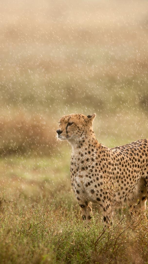Der Gepard, das schnellste Säugetier der Welt, ist der Hausherr des Ngorongoro Schutzgebiets in Tansania. Geparde leben in den unterschiedlichsten Landschaften, von den Graslandschaften der Serengeti bis zu den trockenen Weiten der Sahara. Sie haben einen langen Schwanz, lange Beine und einen schlanken Körperbau, der ihnen hilft, sich schnell fortzubewegen.