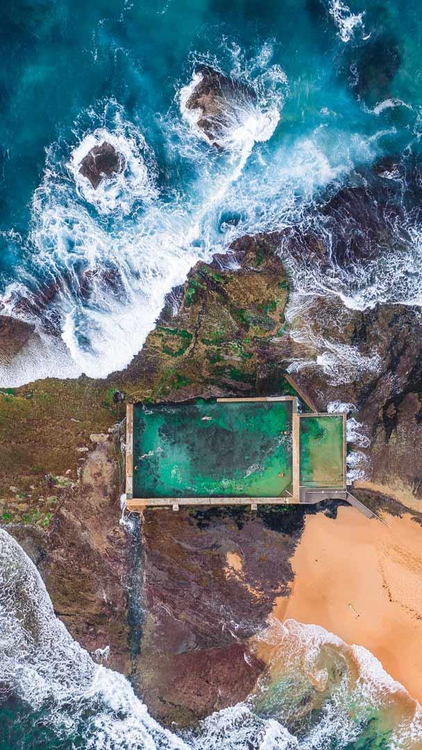 ¿Te imaginas nadar en el océano sin preocuparte por las olas ni la sal en los ojos? La piscina de rocas de Mona Vale, en Sídney (Australia), lo hace posible. Situada entre las playas de The Basin y Mona Vale, esta piscina parece una maravilla natural, aunque fue tallada en los años treinta como parte de un proyecto para combatir el desempleo durante la Gran Depresión. Mide más de 30 metros de largo y cuenta con una zona infantil. Durante la Segunda Guerra Mundial, fue utilizada por tropas acampadas en la zona. Hoy sigue abierta todo el año, es gratuita y se limpia con frecuencia, tanto por operarios municipales como por el propio mar. ¿Sabías que Australia cuenta con más de 100 piscinas de roca junto al mar?