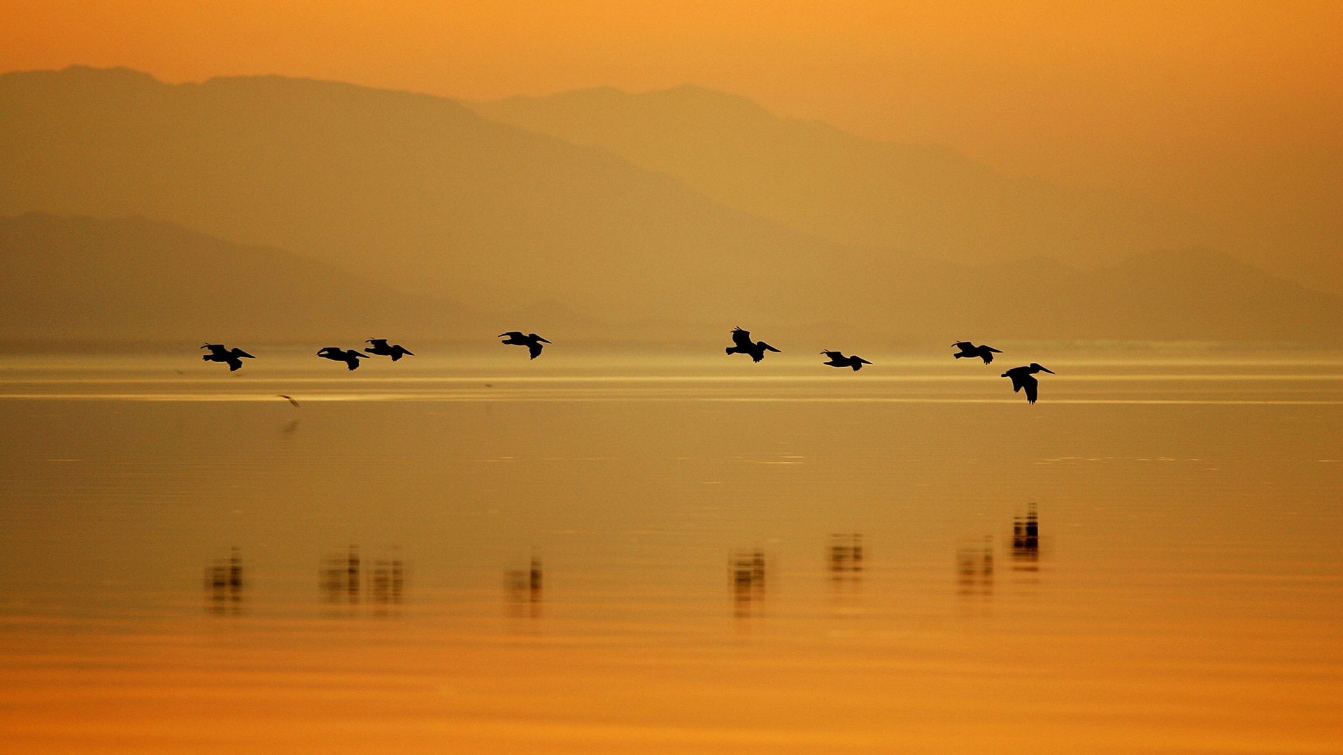 Où volent ces oiseaux ? Réserve naturelle nationale de Sonny Bono Salton Sea, Californie (© David McNew/Getty Images)