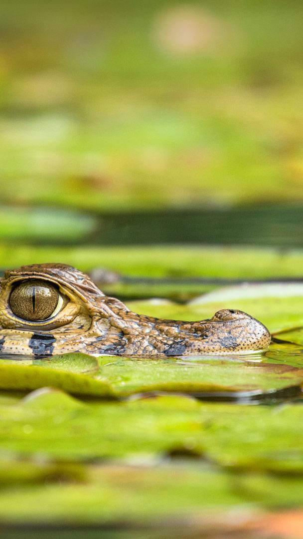 Plongez dans les eaux mystérieuses de la réserve nationale de Tambopata au Pérou, où règne le redoutable caïman noir d"Amérique du Sud. Il peut atteindre 6 mètres et peser jusqu"à plus de 450 kilos. Leur teinte vert foncé les camoufle parfaitement dans les profondeurs opaques. Ces carnivores dominent les environnements d"eau douce, chassant oiseaux, poissons et tortues, voire de grands mammifères.