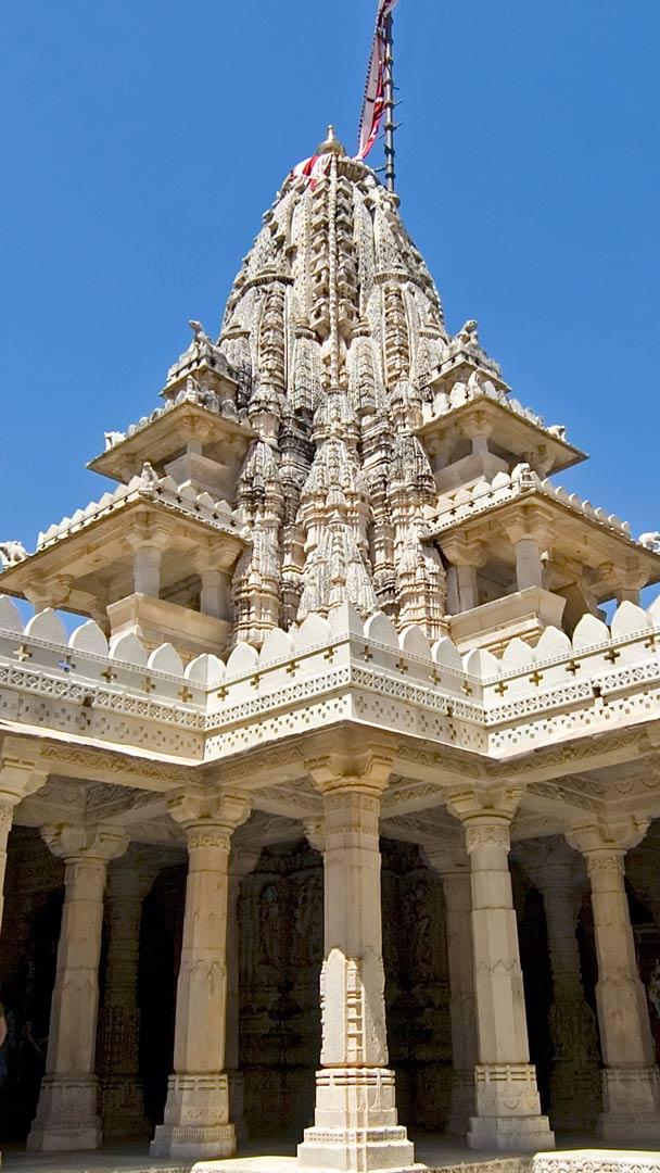Step into the world of intricate artistry at the sacred site of Ranakpur Jain temple, Rajasthan. Also known as Chaturmukha Dharana Vihara, because of the four faces temple design, this stunning Śvētāmbara Jain temple is dedicated to Tirthankara Rishabhanatha, also known as Ādinātha. This architectural marvel was commissioned by Darna Shah, a local Jain businessman, in the 15th century after he experienced a divine vision. The temple is crafted in the form of the Nalini-Gulma Vimana—a heavenly vehicle that he envisioned in his dreams. Built in the Māru-Gurjara architectural style, the temple houses a garbhagriha, the innermost sanctuary, where the main Chaumukha Adinatha idol is enshrined.