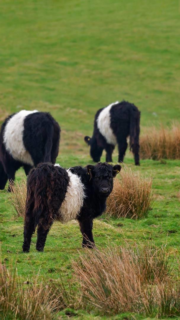 Black-and-white bovines Belted Galloway cows in Scotland (© JohnFScott/Getty Images)