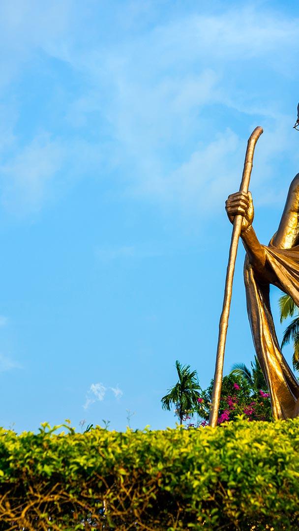 Remembering the Mahatma The golden statue of Mahatma Gandhi in Port Blair, India (© Darren Robb/The Image Bank/Getty Images)