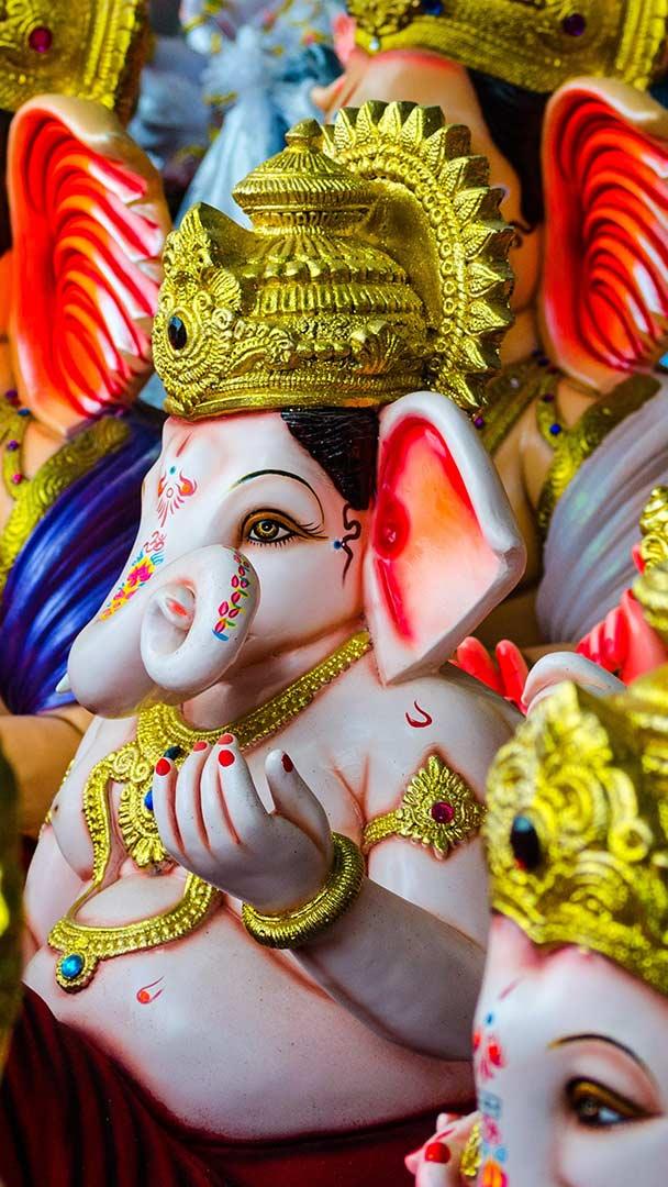 The lord of all beginnings Colourful Ganpati idols for the Ganesha festival (© Deepesh Dongre/iStock/Getty Images Plus)