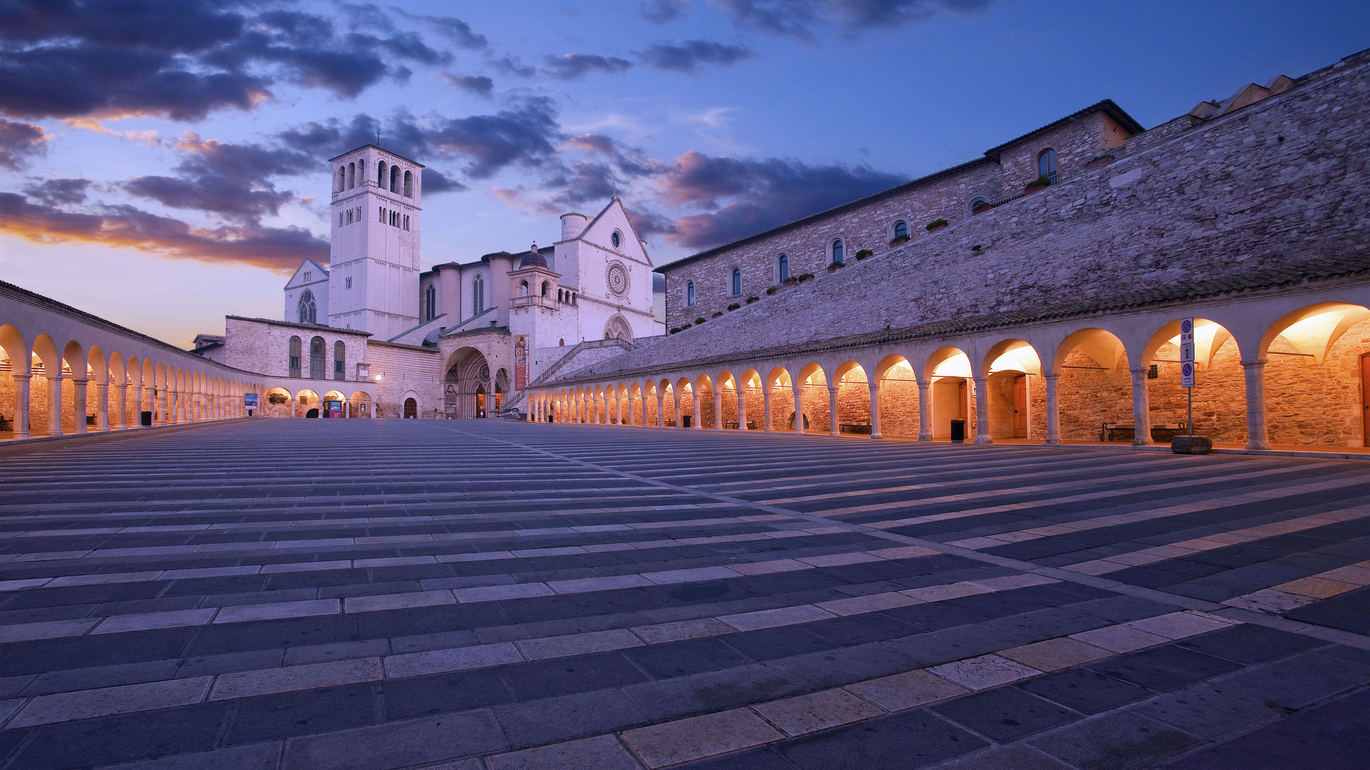 Le luci della sera sulla Basilica Basilica di Assisi (© Maurizio Rellini/Sime/eStock Photo)