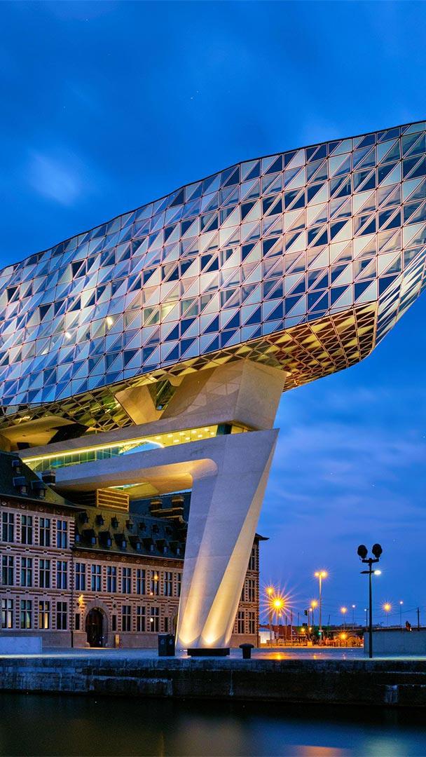 Il futuro costruito sul passato Edificio Port House, progettato dallo studio di architettura Zaha Hadid Architects, Anversa, Belgio (© Dmitry Rukhlenko/Alamy)