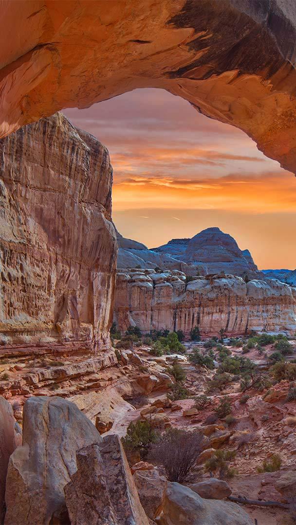 Prendi il sentiero più battuto Ponte di Hickman presso il Parco Nazionale di Capitol Reef, Utah, Stati Uniti dAmerica (© Tim Fitzharris/Minden Pictures)