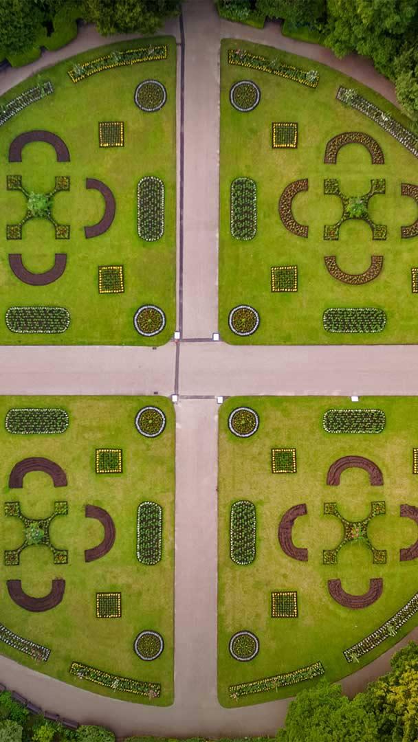Impressionanti simmetrie Abbey Gardens a Bury St Edmunds, Suffolk, Inghilterra (© Charles Martinez/Amazing Aerial Agency)