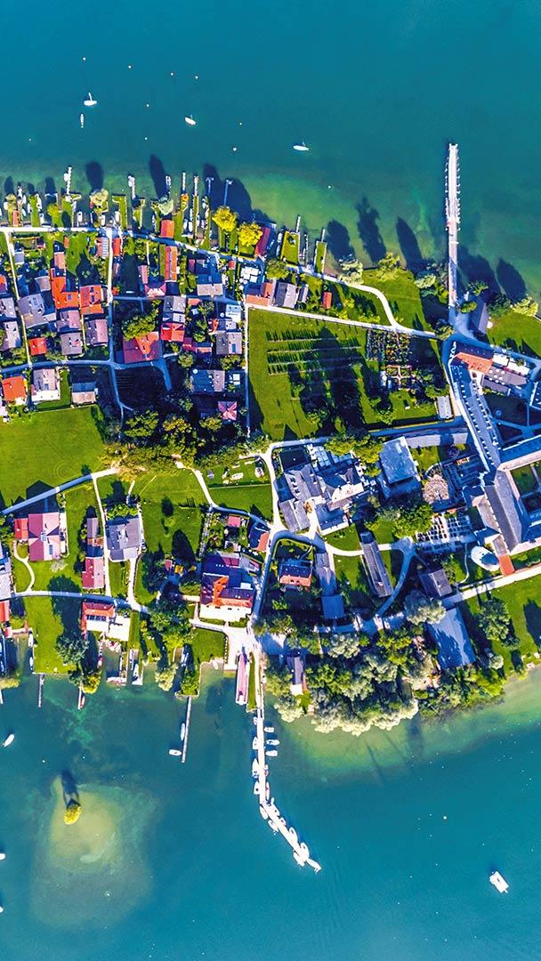 L’isola delle femmine della Germania Veduta aerea dellisola di Fraueninsel a Chiemsee, Baviera, Germania (© Malorny/Getty Images)