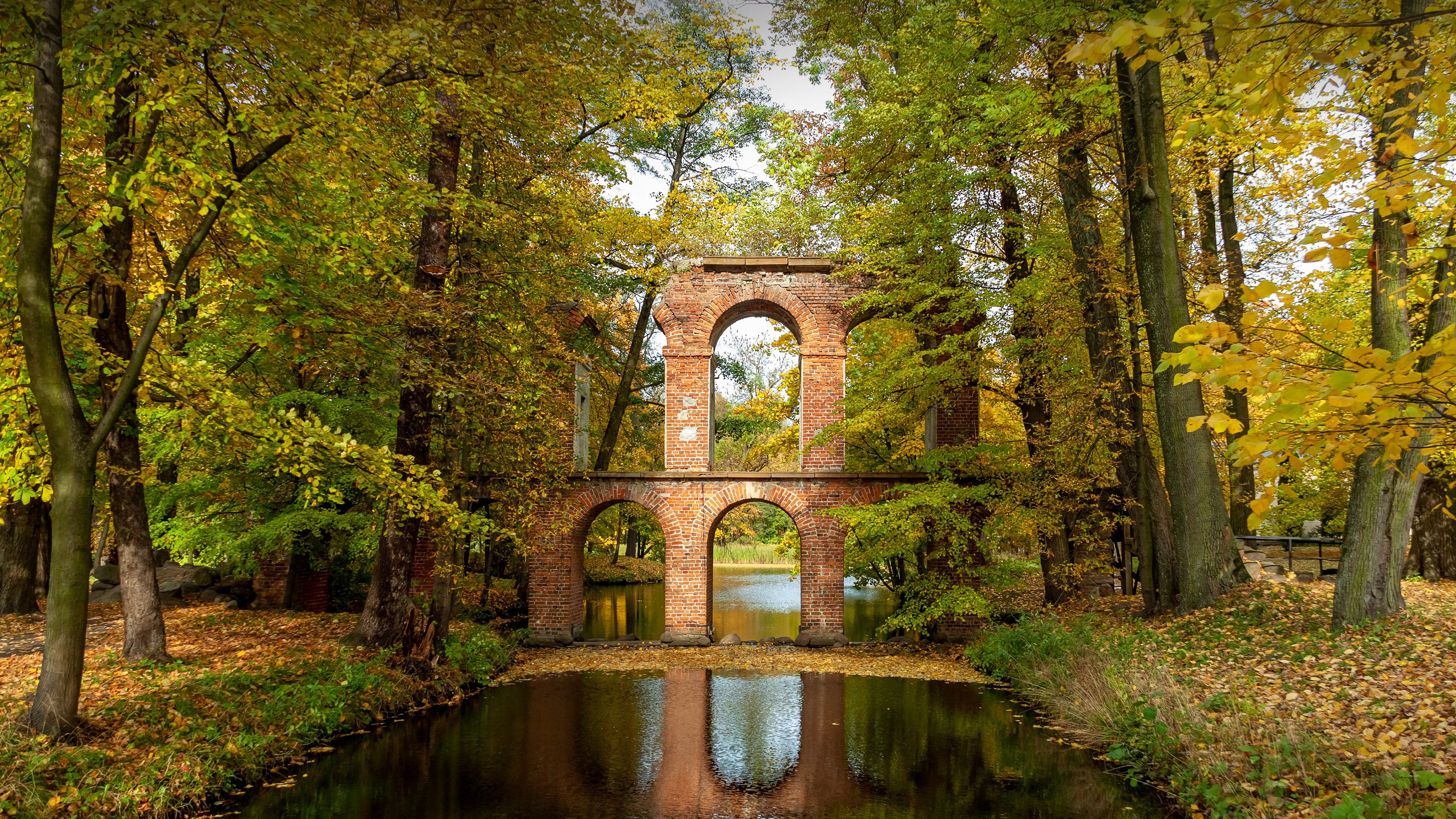 Acqua sopra e sotto il ponte Acquedotto di ispirazione romana, Parco Arkadia, Polonia (© PATSTOCK/Getty Images)