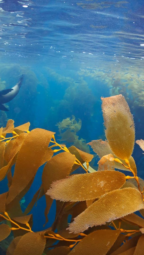 Il re leone del mare Leone marino della California in una foresta di alghe giganti, Baja California, Messico (© Claudio Contreras/Minden Pictures)