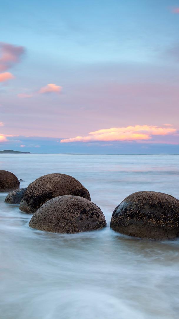 Massi, ma no? Massi di Moeraki al tramonto, Isola del Sud, Nuova Zelanda (© Douglas Pearson/eStock Photo)