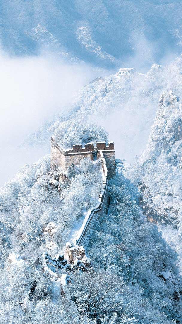 Bianco contro il tempo Neve sulla Grande Muraglia Cinese, Cina (© View Stock/Alamy Stock Photo)