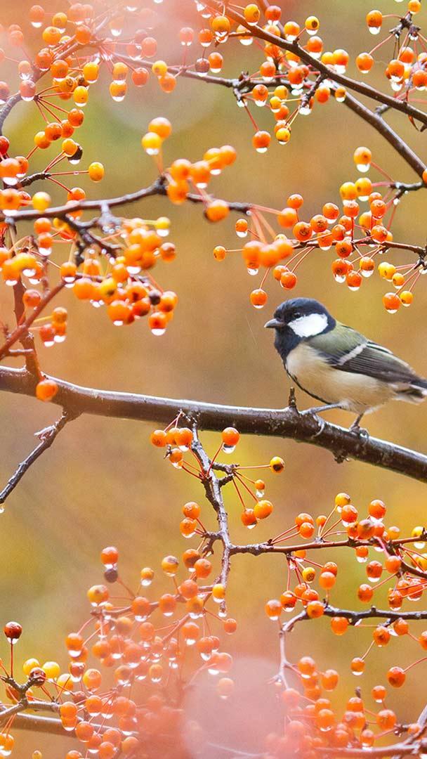 今日は「立冬」 赤い実をついばむシジュウカラ (© Aflo Co., Ltd./Alamy Stock Photo)