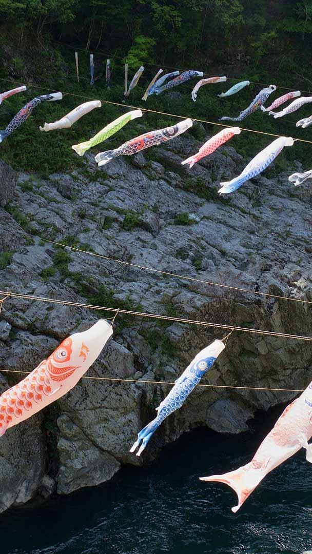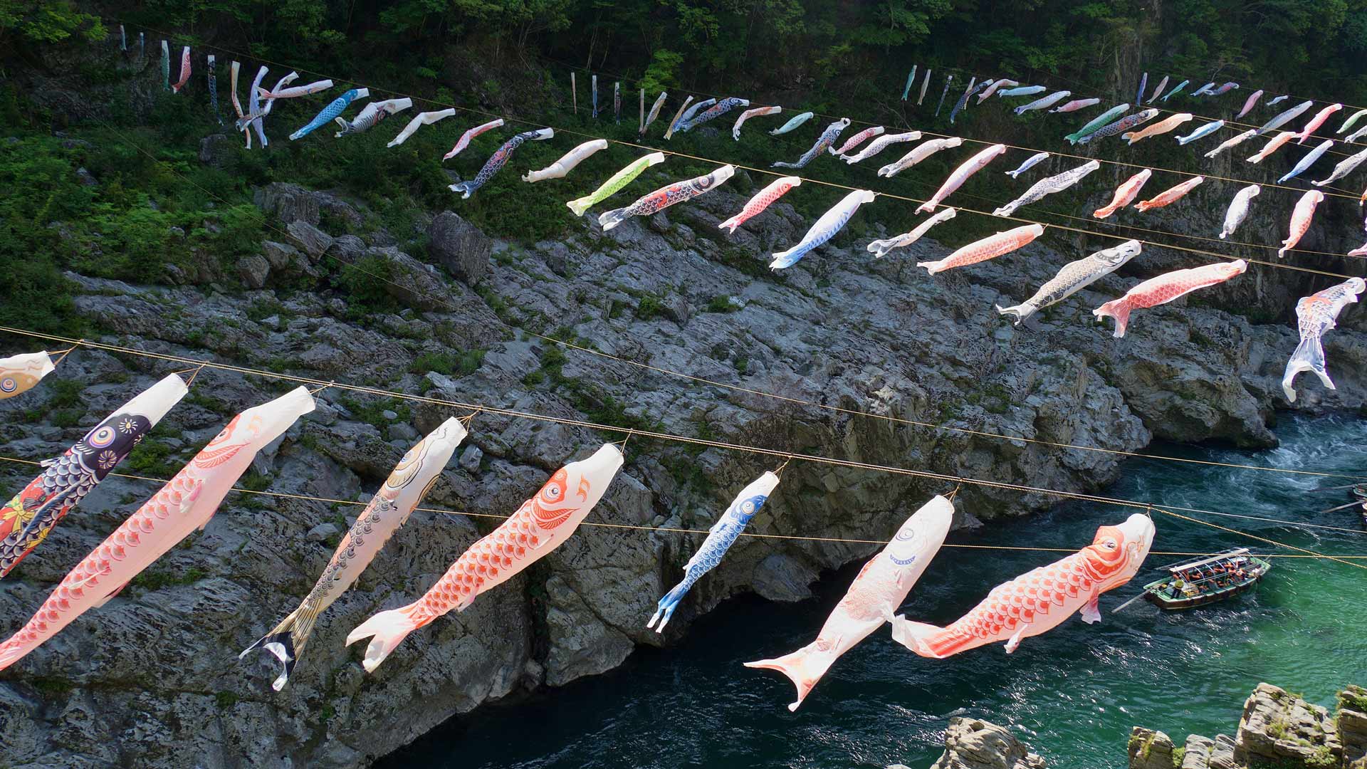 今日 5 月 5 日は「こどもの日」。兜や鎧を身にまとった五月人形や鯉のぼりを飾り、子供たちの健やかな成長を願う風習があります。ここ、四国地方にある吉野川の大歩危峡では、数百匹もの鯉のぼりがたなびきます…
