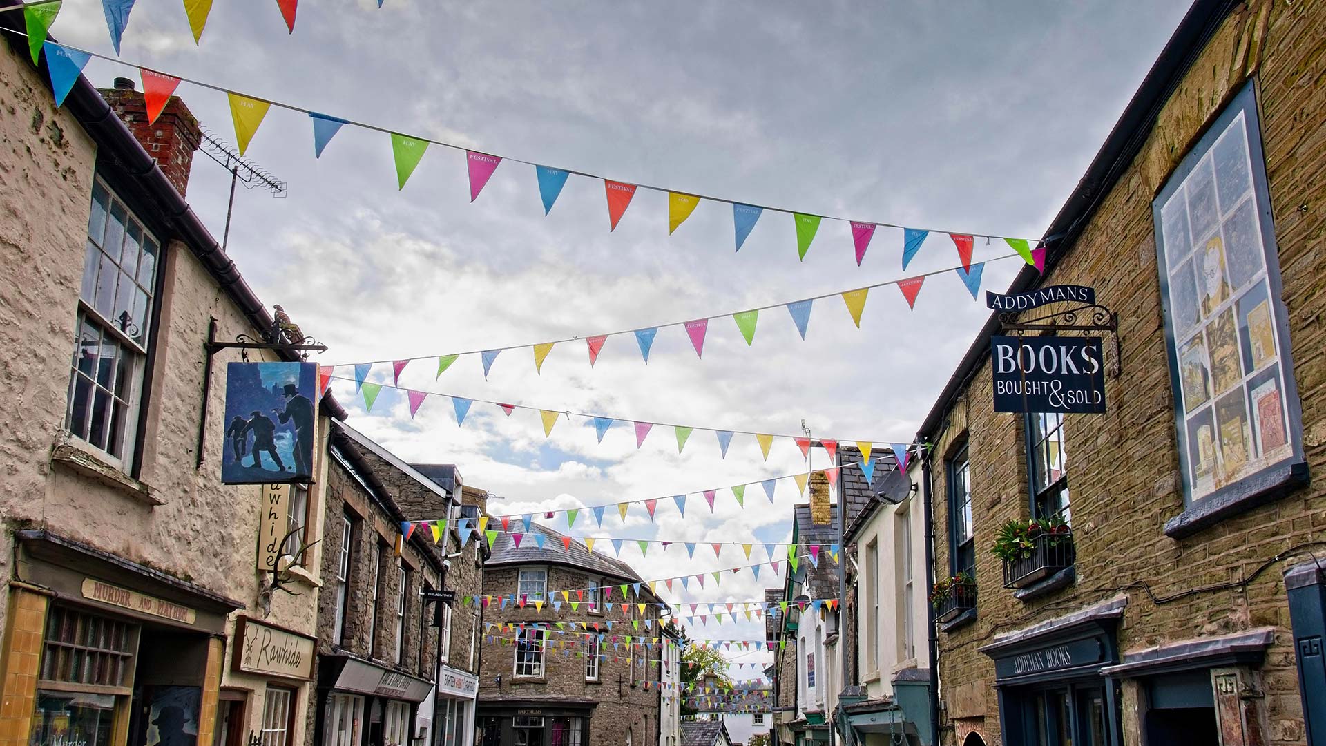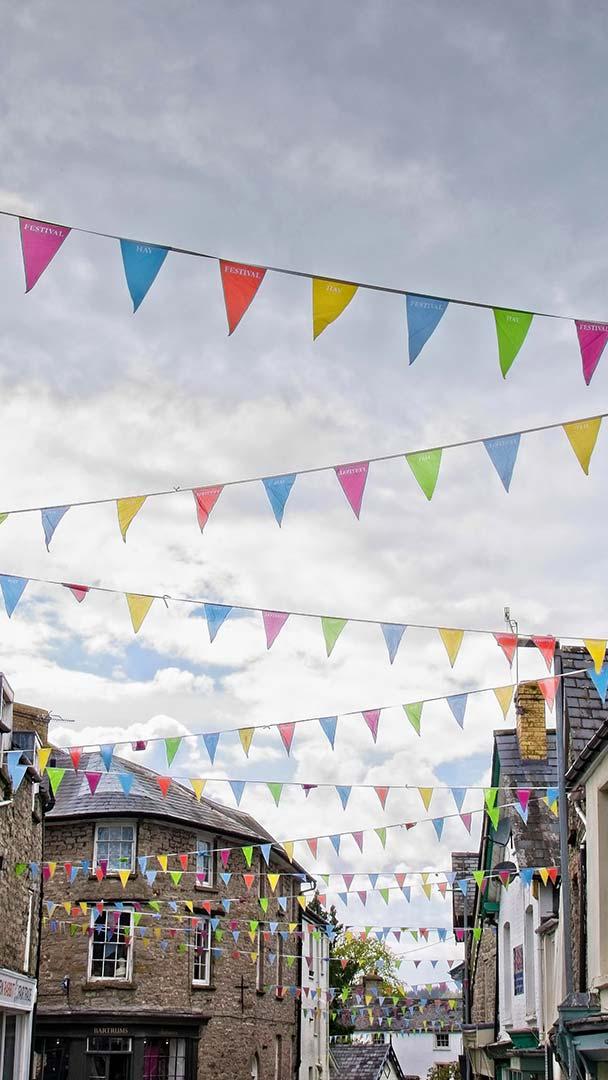 The Town of Books Bunting across the street in Hay-on-Wye, Powys (© Simon Whaley Landscapes/Alamy)