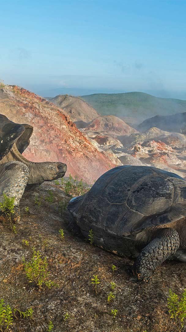 Don’t set your watch to the migration timetable of the Galápagos giant tortoise—it doesn’t follow a predictable schedule the way so many other animal migrations do. Scientists first tracked the migration of giant tortoises in the Galápagos Islands in 2013, and they’ve discovered that not only is it marvelously slow, it’s kind of erratic, and flies in the face of human understanding as to why and how most animals migrate. Only the older tortoises make the roughly 6-mile climb out of the soggy jungle up into the hills—in this case, the slopes of Alcedo Volcano on Isabela Island. The journey is loosely related to mating, but researchers think there may be many other unknown variables at play. Whatever compelled these two lumbering giants up here, in about six months, they’ll start the slow climb back down to the jungle.