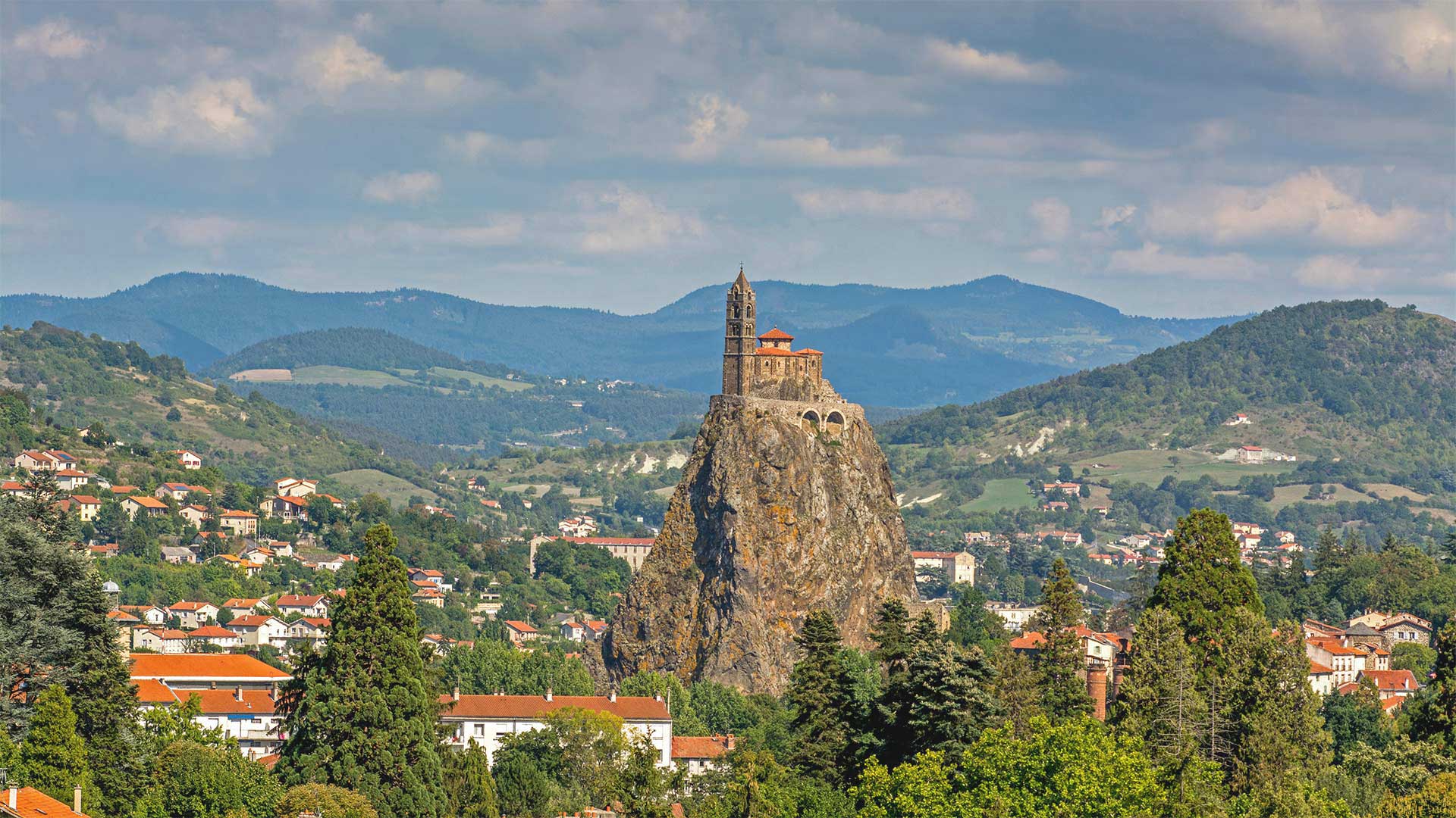 Pace yourself—you"ll need to climb 268 stone steps to reach the entrance of Chapel St-Michel d"Aiguilhe (Chapel of St. Michael of the Needle). This historic church near Le Puy-en-Velay, France, is a UNESCO World Heritage Site that attracts visitors from around the world. It was constructed in 969 by a local bishop and dedicated to the Archangel Michael, the patron saint of mountaintops. Even before the chapel was built, the site had spiritual significance, as it was home to prehistoric dolmens (stone tombs) built by the Romans to honor their god Mercury.