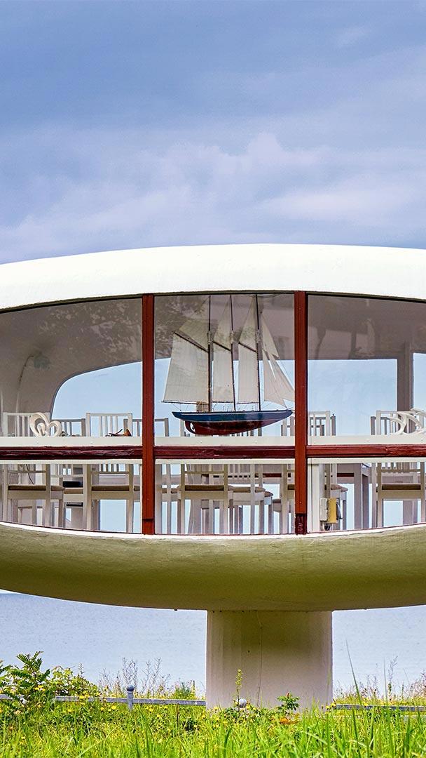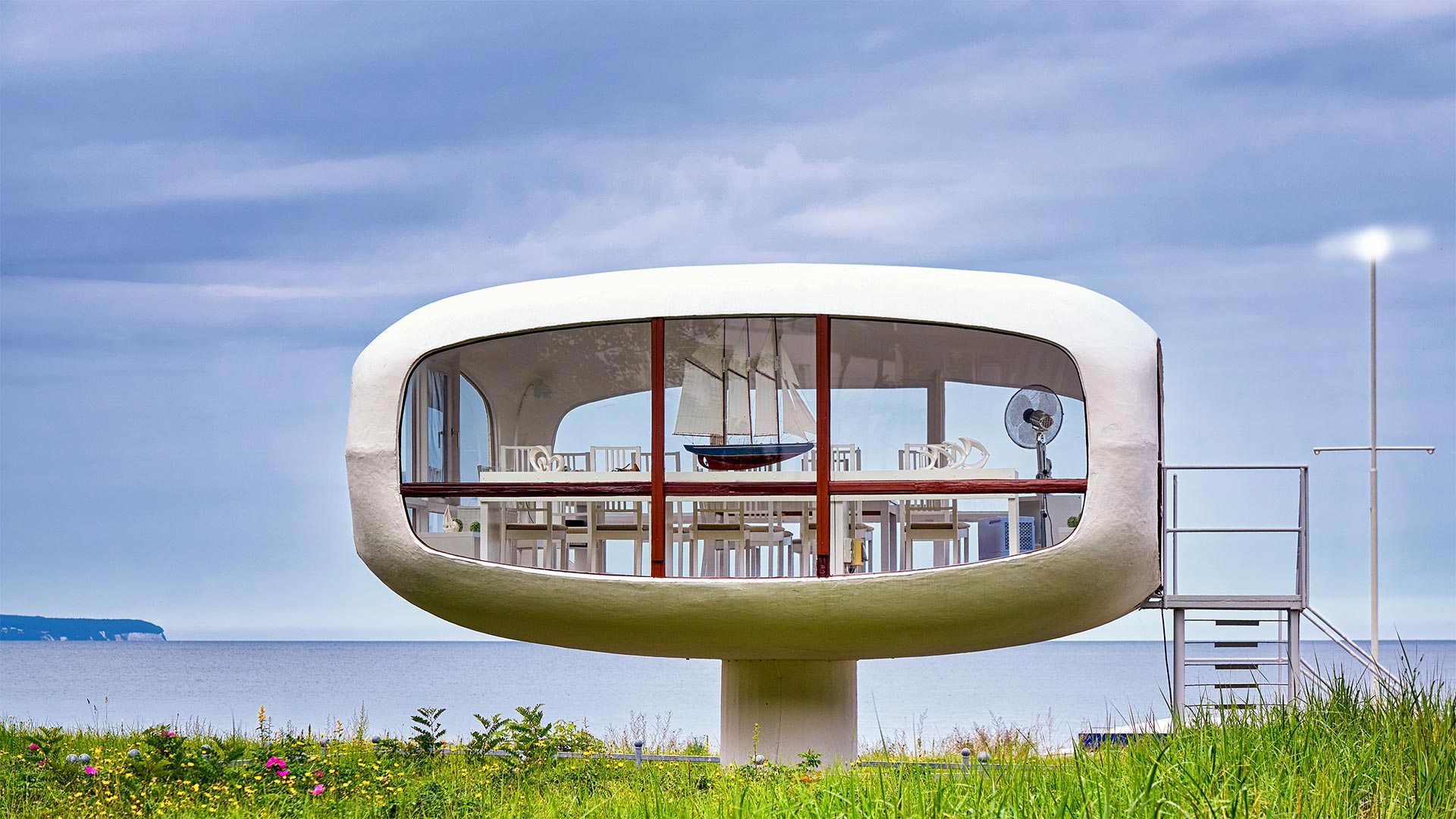 This pod-like structure near the seaside resort of Binz, on the Pomeranian coast of northeast Germany, provides a snapshot into a different era, delivered by the architect Ulrich Müther. Originally a lifeguard tower, it was constructed in 1968 in a style known as shell architecture using an innovative thin, poured-concrete material. Müther designed and built roughly 70 buildings in this manner, many of them here on the island of Rügen, where he lived. His work is regarded as some of the most outstanding examples of architecture in the region.