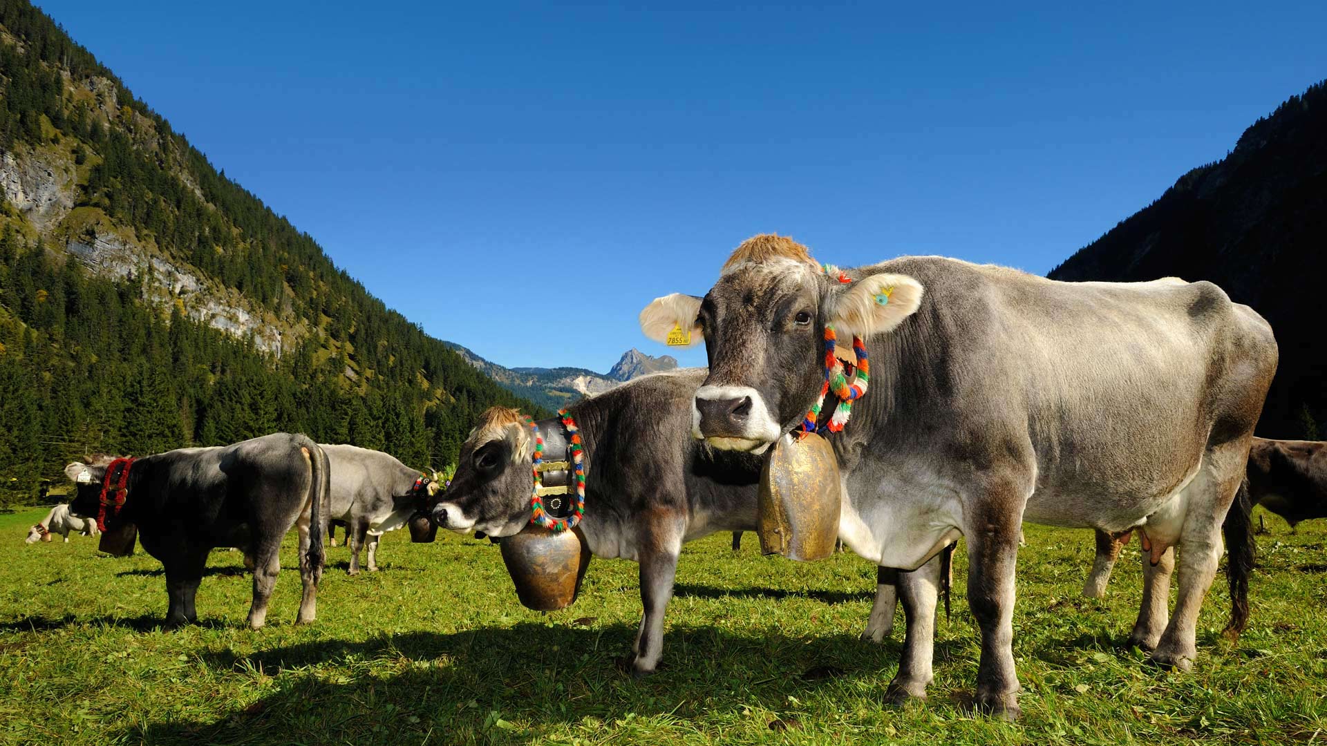 These stylish cows are decorated to celebrate their annual return from high Alpine pastures to the towns and villages where they spend the winter. Known as the Almabtrieb, the tradition is generally held in late September or early October throughout the Alpine regions of Europe. These cows are in the Tannheimer Tal, a valley of the Allgäu Alps in Austria, where more than 100,000 head of cattle make the seasonal migration.