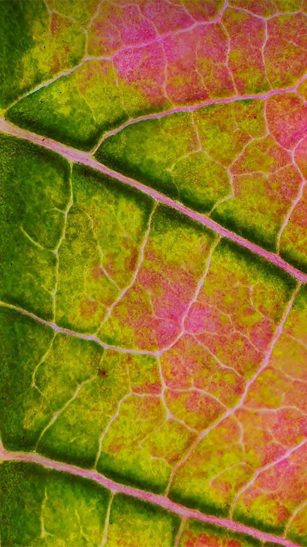 On National Poinsettia Day we"re taking an up-close look at a poinsettia leaf. Although many people assume the red, white, pink, purple, or marbled colors are flowers, they"re actually bracts, a type of leaf that aids in reproduction, usually by turning color as the plant develops true flowers. On the poinsettia, the bracts, surrounding small yellow clustered buds called cyathia, flag down pollinators just as flower petals do.