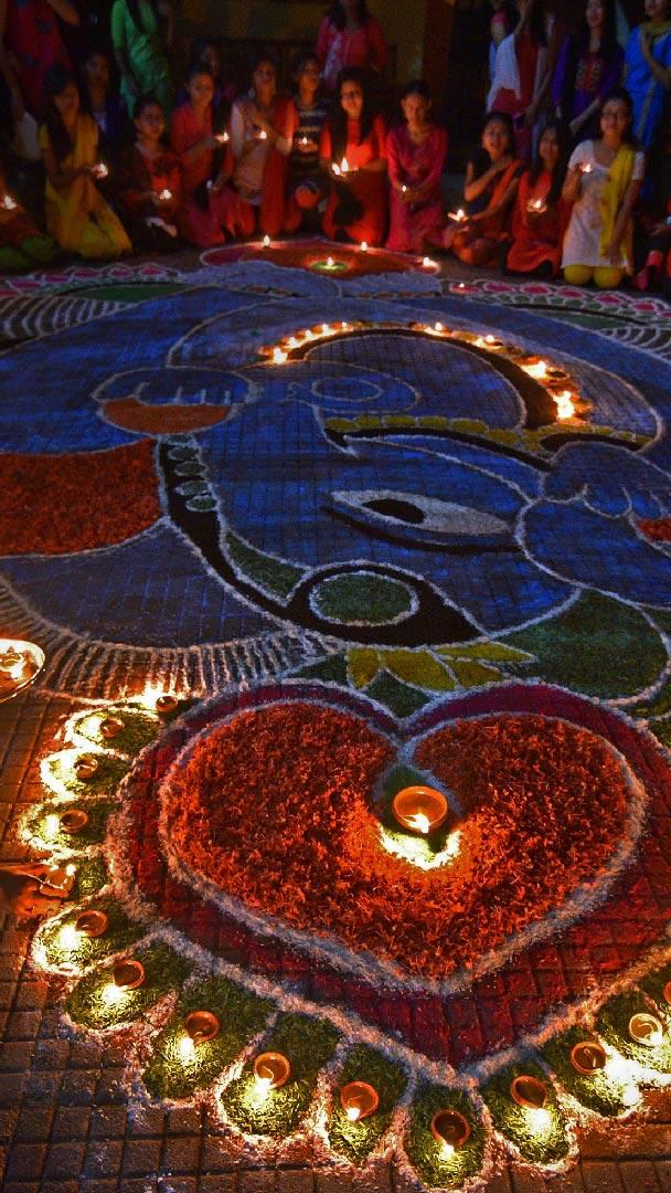 These students in Guwahati, India, are lighting oil lamps called diya, and placing them around a floor decoration called rangoli. They’re preparing for Diwali, a five-day celebration symbolizing the victory of light over darkness. It’s a Hindu festival, but Sikhs, Jains, and Newar Buddhists also observe variations of Diwali. Many homes, temples, and commercial spaces decorate with lights, especially diya. The rangoli decoration is thought to bring good luck, and is created by hand using colored rice, flours, sand, or sometimes flower petals. Diwali lasts until November 11, so there’s still time to embrace the light.